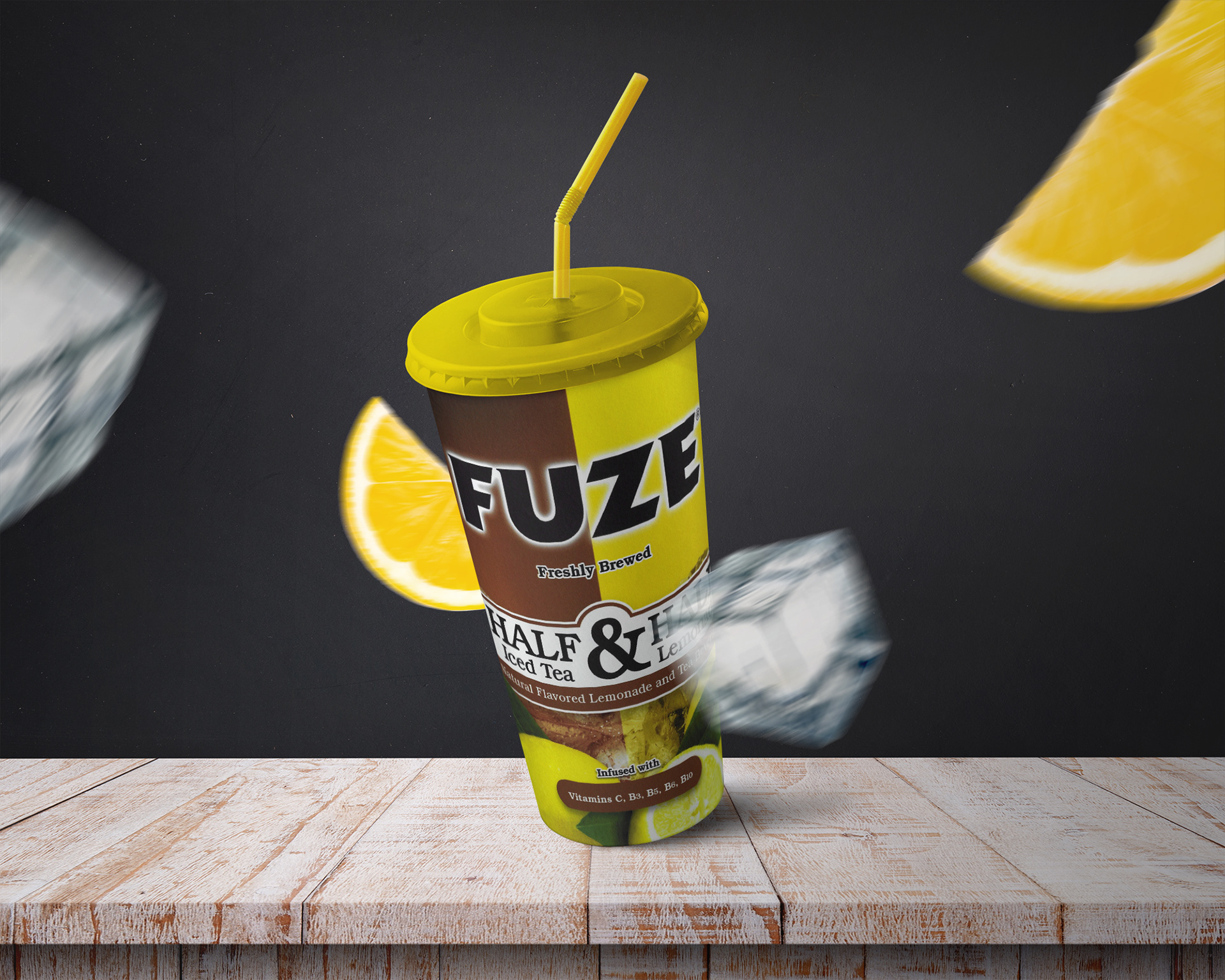 A fountain cup designed for the Fuze tea brand, to be served in Subway restaurants.