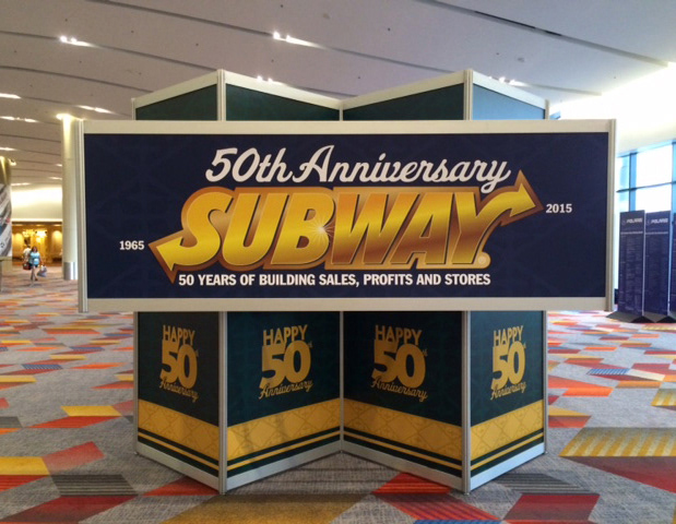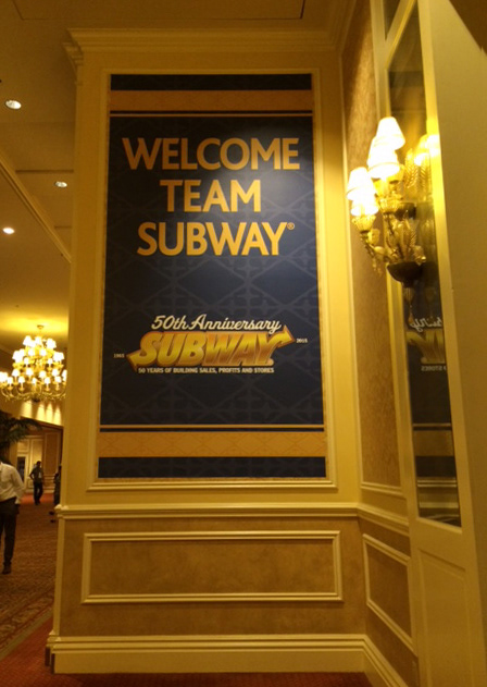I created thousands of signs during my time at Franchise World Headquarters LLC. Signage seen below was produced by hand for Subway's 50th Anniversary Convention.