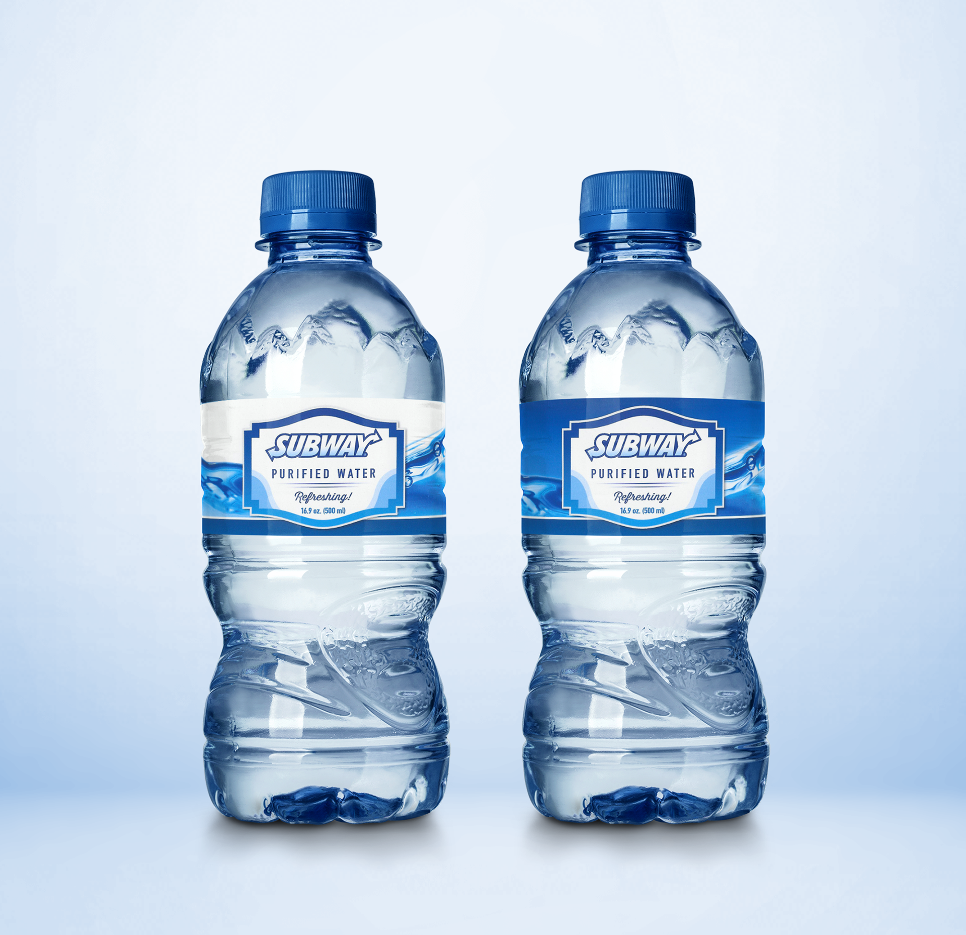 Label concepts for a branded Subway water bottle.